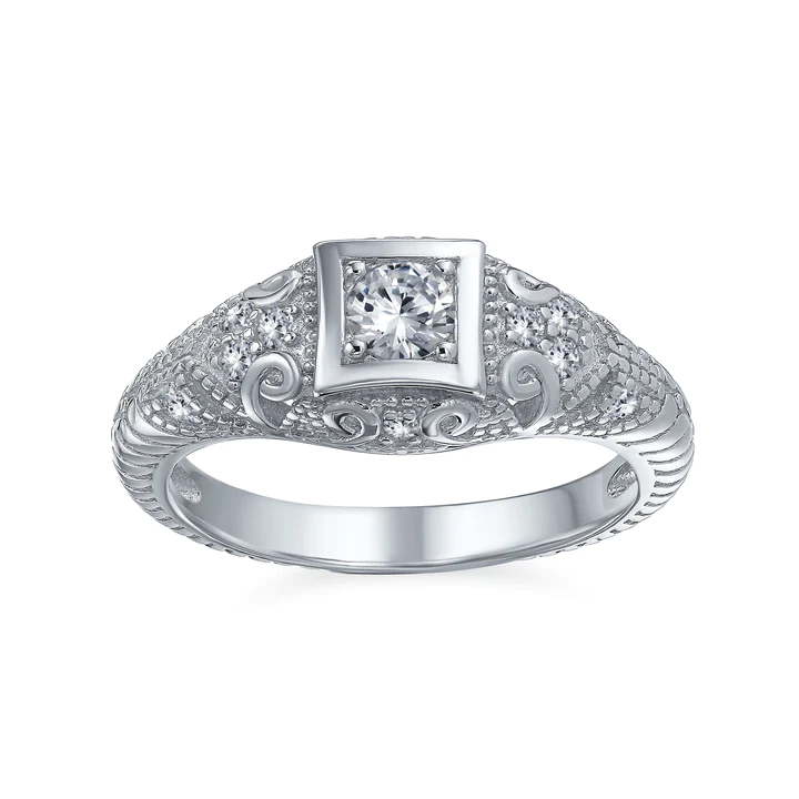 Whether you were born in April or just love a beautiful clear Cz look, this elegant art deco full finger is the perfect choice. Made of rhodium plating and a captivating filigree pattern.