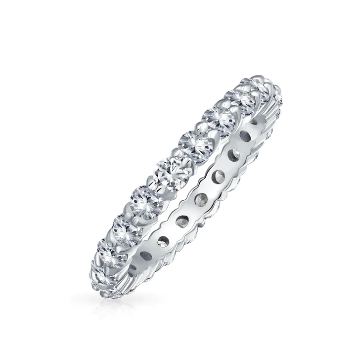 Classic Elegant Stackable 4 Prong Set Faceted Baguette Emerald Cut CZ Eternity Band Ring